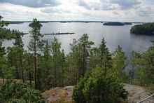 I had three days to explore Linnansaari National Park in lake Saimaa Finland. The harbour was in sheltered bay and the wind was behind me. When I sailed on a reach, open lake area winds picked me up and I reefed the sail one step down. It was fun sailing.
